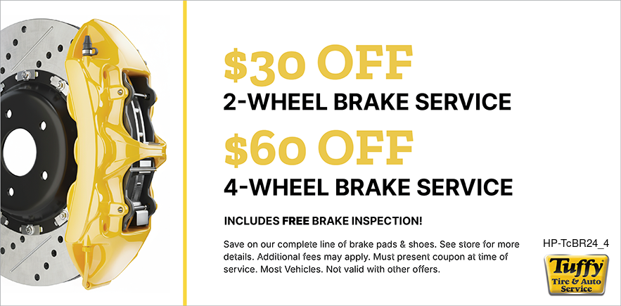 Brake Service Special, $30 Off 2-Wheel/$60 Off 4-Wheel Plus Free Brake Inspection.